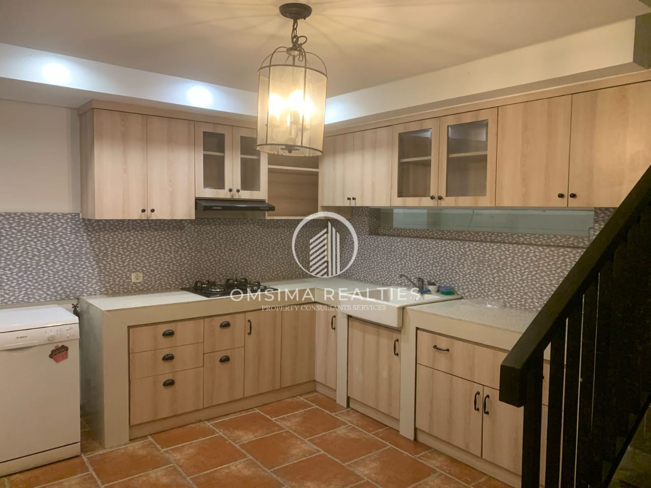 LT 340 m2 LB 440m2 (2 lt + rooftop) Listrik 7.700 watt Furnished Air PAM Bebas Banjir Lt 1: – 1 KT+ KM (Master Bedroom) – R tamu, keluarga, makan – Pantry/ dapur bersih – Dapur dengan diswasher – Kolam renang – 1 KM – garasi 1, carport 3 – ruang security dng CCTV Lantai 2: – 3 KT, 3 KM (1 bathub) – R keluarga – Pantry/dapur bersih Area terpisah: – 1 kamar ART + kamar mandi, gudang – area cuci dengan mesin cuci & mesin pengering Lt3 /RoofTop + gudang